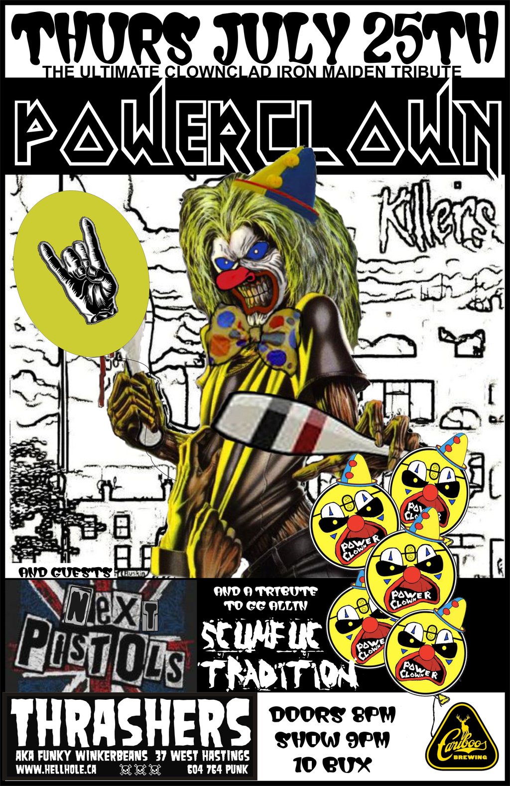 THE ULTIMATE CLOWN CLAD IRON MAIDEN TRIBUTE!!~: Power Clown, The Next Pistols, SCUMFUC TRADITION [GG ALLIN] @ Funky Winker Beans Jul 25 2013 - Feb 14th @ Funky Winker Beans