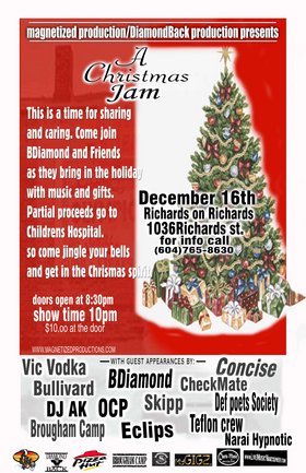 A Christmas Jam: B Diamond, Brougham Camp, Checkmate, Concise, Vic Vodka, Eclips, TEFLON CREW, Skipp & Opc, DJ AK @ Richard's On Richards Dec 16 2004 - Jan 9th @ Richard's On Richards