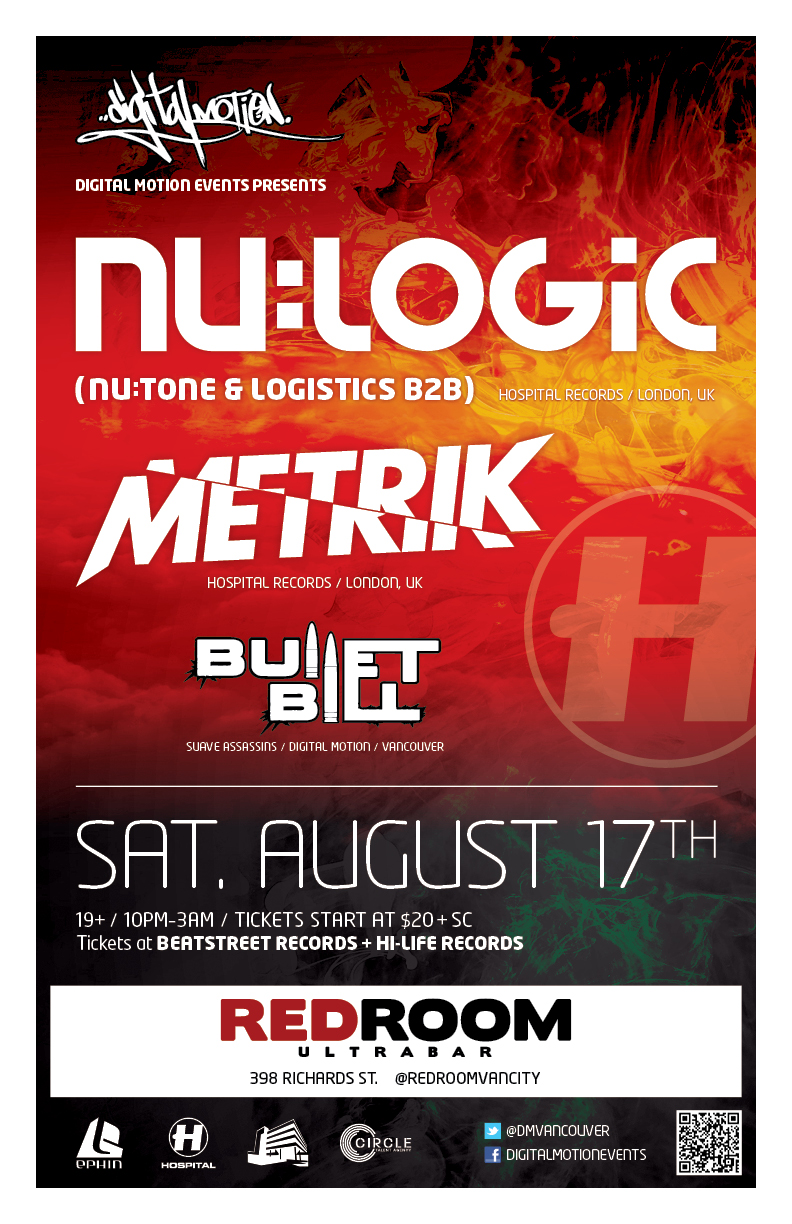 Hospital Records artists:  Nu:Logic  (aka Nu:Tone),  Logistics  (w/), METRIK @ The Red Room Aug 17 2013 - Jan 13th @ The Red Room