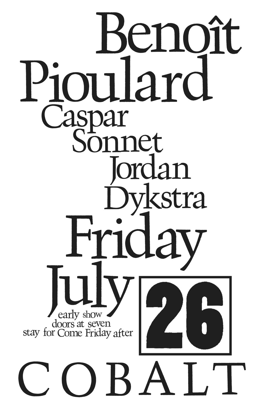 Benoît Pioulard, Caspar Sonnet, Jordan Dykstra @ The Cobalt Jul 26 2013 - Nov 12th @ The Cobalt