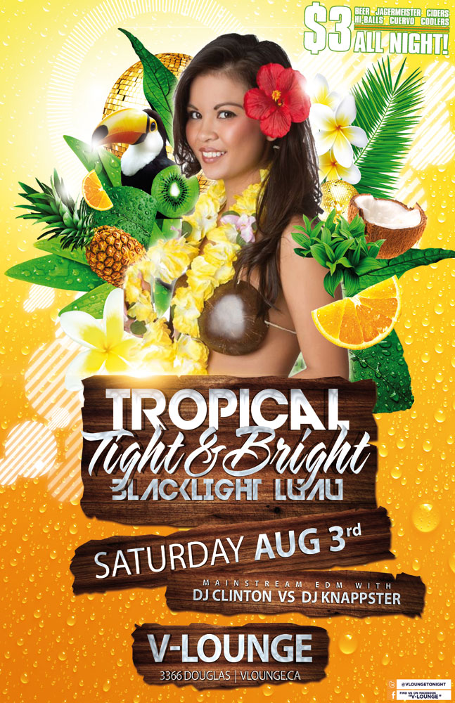 DJ Clinton vs DJ Knappster will be playing next level mainstream Electro remix top 40 that will sure to leave you with multiple eargasms! Did we mention that it's also a tropical themed TIGHT & BRIGHT BLACKLIGHT LUAU PARTY!