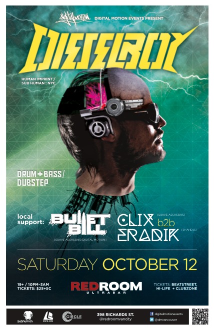 The Return of: Dieselboy, Bullet Bill , CLIX   (Suave Assassins), Eradik (SHAHdjs) @ The Red Room Oct 12 2013 - Jan 13th @ The Red Room