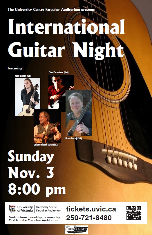 For 2013-2014, IGN founder Brian Gore will be joined by Italy's Pino Forastiere, Mike Dawes from England, and Quique Sinesi from Argentina. Pino is revered in contemporary steel string guitar circles for his unique mix of melody, improvisation and hand percussion using the strings, the fretboard and the body of the guitar. In recent years Mike Dawes has helped spearhead the current wave of UK fingerstyle guitarists. Quique is a master of many South American melodies and rhythms on both buitar and charango. We are looking forward to a particularly inventive evening of contemporary guitar music.