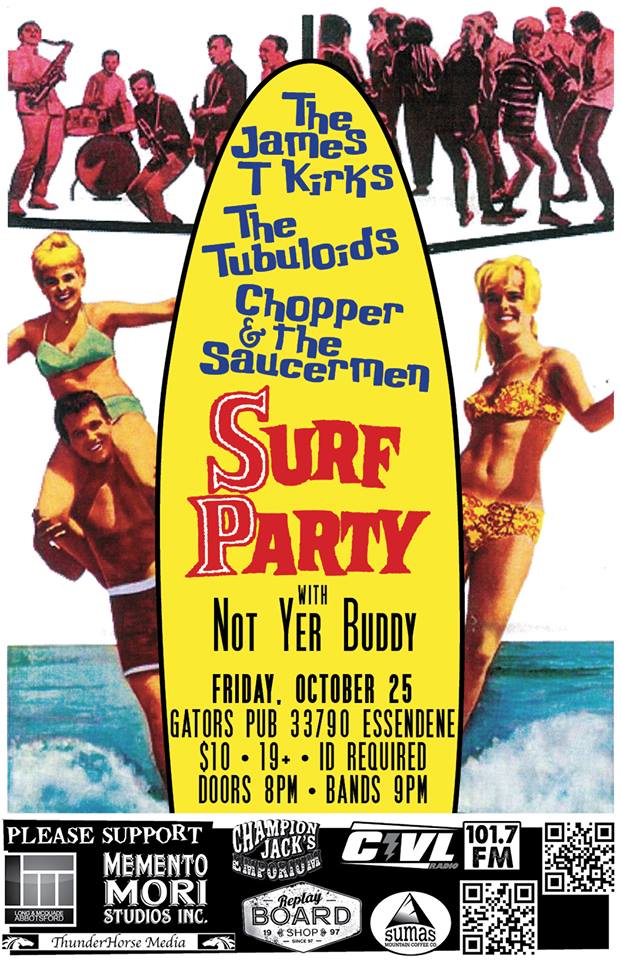 SURF SHOW!!!: The James T. Kirks, The Tubuloids, Chopper and the Saucermen @ Gator's Pub Oct 25 2013 - Feb 13th @ Gator's Pub