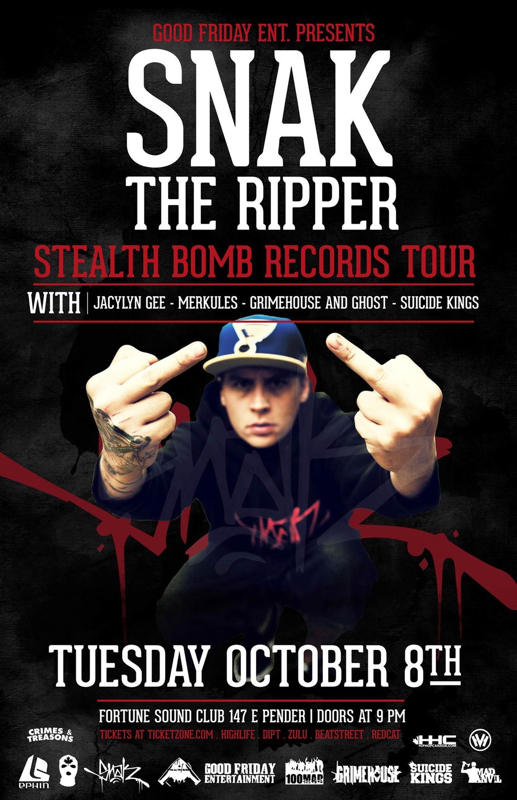 Snak The Ripper, The Suicide Kings (aka Beaumont Avenue), GRIMEHOUSE AND GHOST, MERKULES, JACLYN GEE