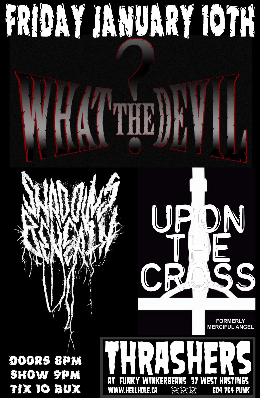 WHAT THE DEVIL?, Shadows Beneath , UPON THE CROSS @ Funky Winker Beans Jan 10 2014 - Feb 20th @ Funky Winker Beans
