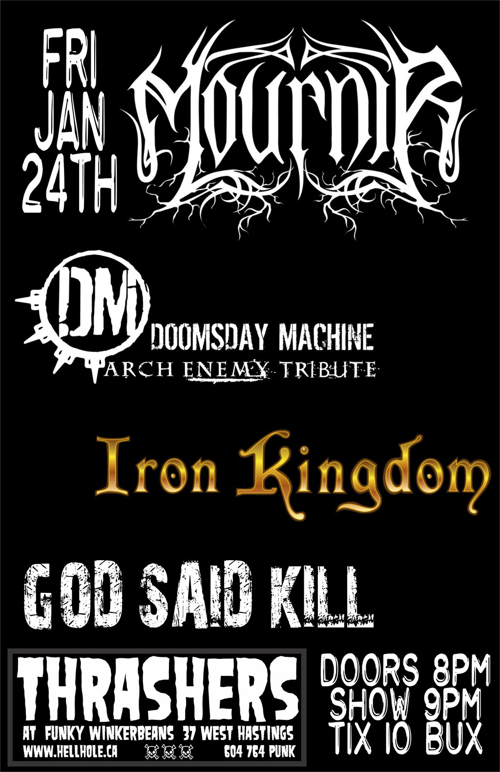 Mournir, Doomsday Machine, Iron Kingdom, God Said Kill @ Funky Winker Beans Jan 24 2014 - Feb 19th @ Funky Winker Beans