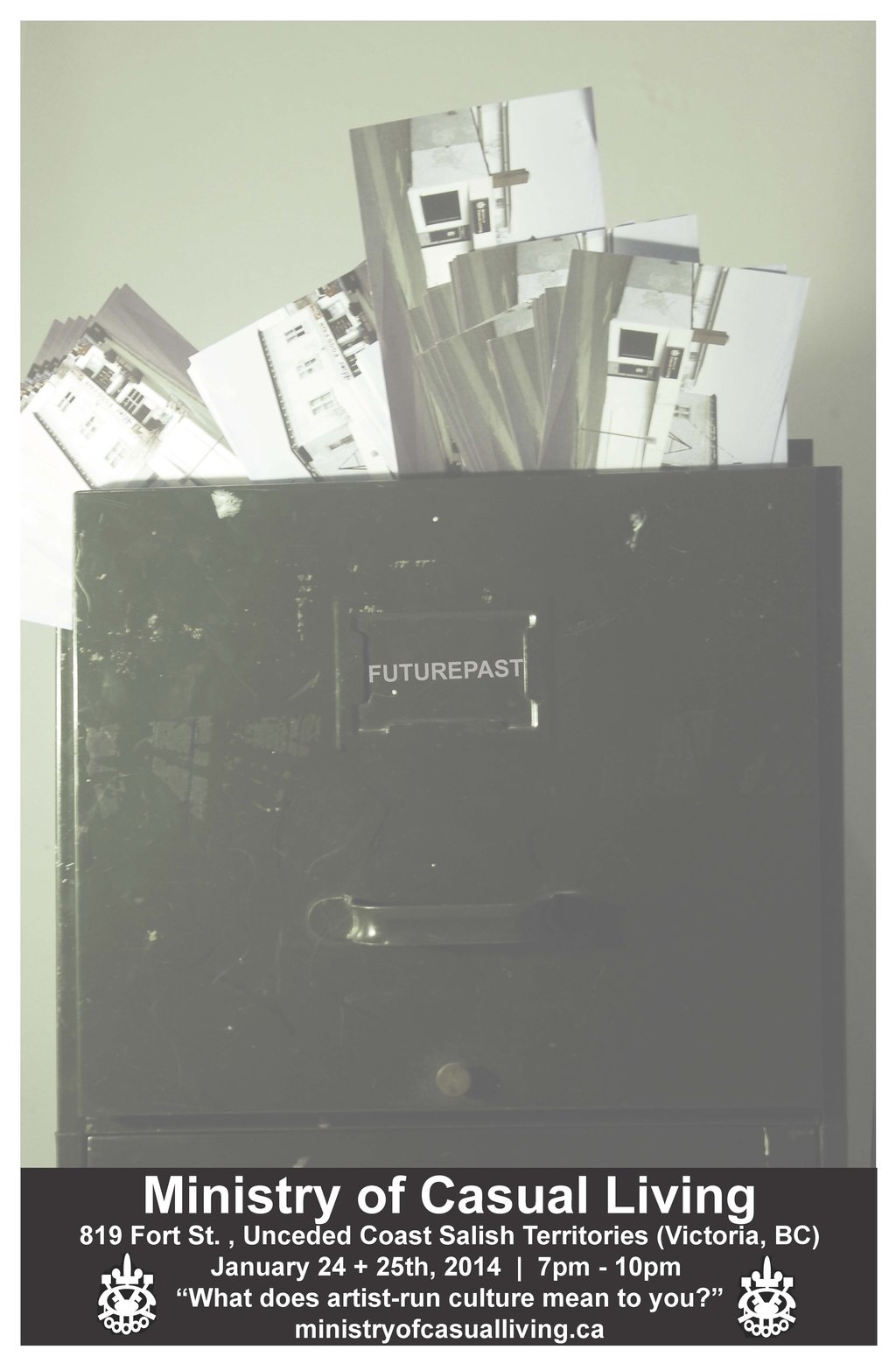A homage to the 11 year 10 month PAST and unknown FUTURE of the artist-run centre the Ministry of Casual Living, opening of our new home on Unceded Coast Salish Territories (in downtown Victoria, BC)
