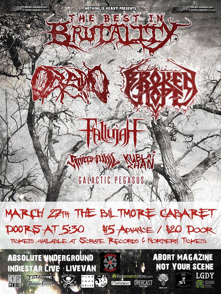 Broken Hope, Fallujah, Rivers Of Nihil, Kublai Khan, Galactic Pegasus, Dig Your Graves @ The Biltmore Cabaret Mar 27 2014 - Feb 12th @ The Biltmore Cabaret