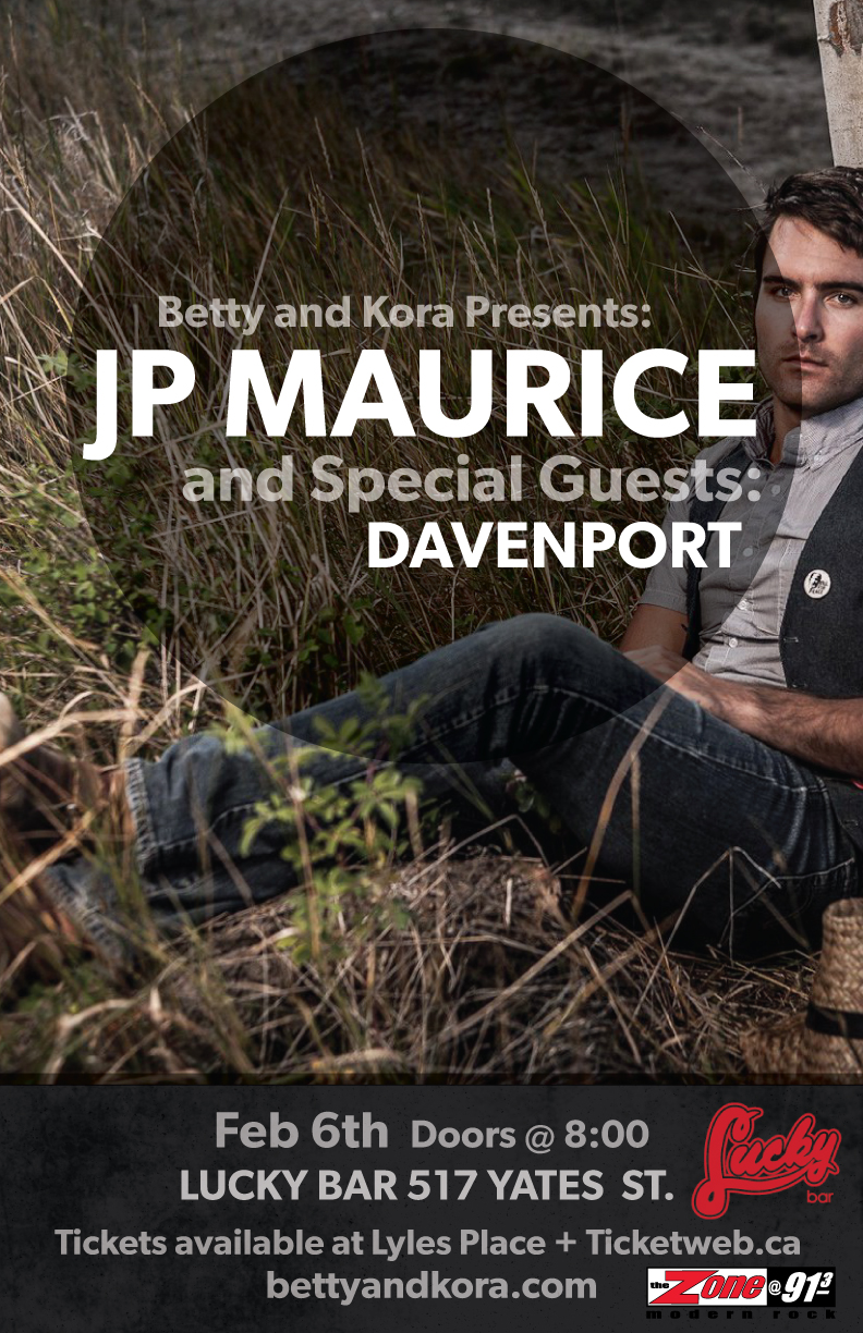 After a smashingly successful three month tour of Europe Victoria's very own JP Maurice returns home for an intimate show at the locale favourite Lucky Bar, Victoria.