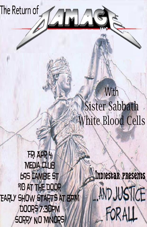 Damage Inc  (A Tribute to Metallica), Sister Sabbath, White Blood Cells @ The Media Club Apr 4 2014 - Feb 19th @ The Media Club