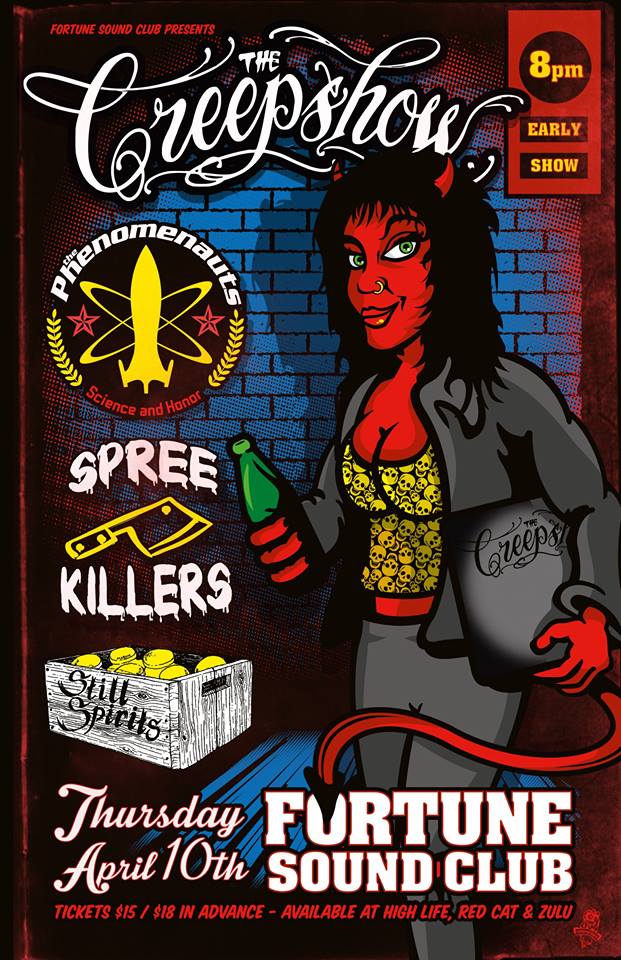 The Creepshow is back releasing yet another album, "Life After Death" ... Joining them will be The Phenomenauts from L.A. on top of some nice local acts Spree Killers and Still Spirits.Doors at 8pm and bands all night. Tickets available at Ticketzone: http://www.ticketzone.com/event/The-Creepshow-CD-Release/234996