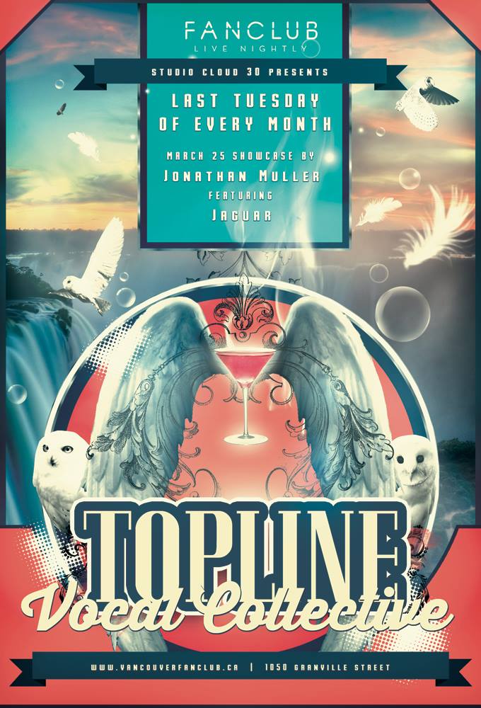 On March 25th Studio Cloud 30 Presents: Topline Tuesday @ Vancouver Fanclub! Come down to listen to Top Line Vocal Collective & Special Guests Jonathan Muller feat. Jaguar. Tickets are $10 and available at the door! Say you're there for Jon or Jaguar to help us out!