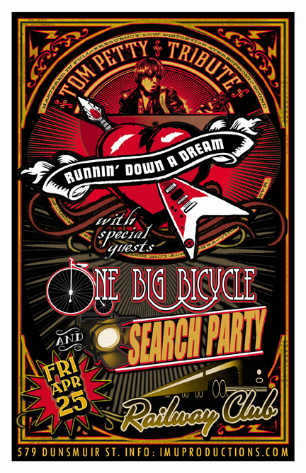 . Friday, April 25th IMU presents RUNNIN' DOWN A DREAM Tom Petty Tribute w/ SEARCH PARTY & ONE BIG BICYCLE @ The Railway Club, 579 Dunsmuir . Show 10pm / $10 cover