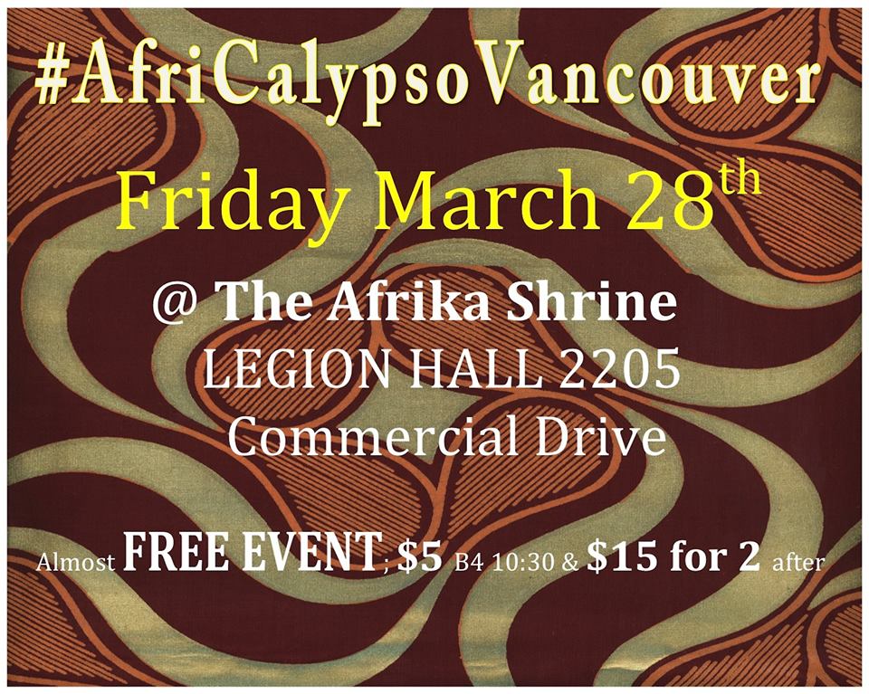 Fri. March 28th 2014 The Afrika Shrine, Legion Hall 2205 Commercial Drive Vancouver BC $5-$15