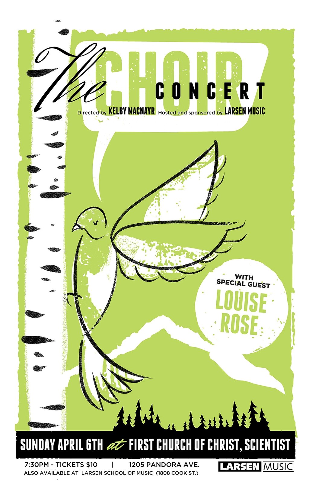 Tickets are $10 (kids 12 and under free). Available at the Larsen School of Music (1808 Cook St), from Choir members directly or at the door.