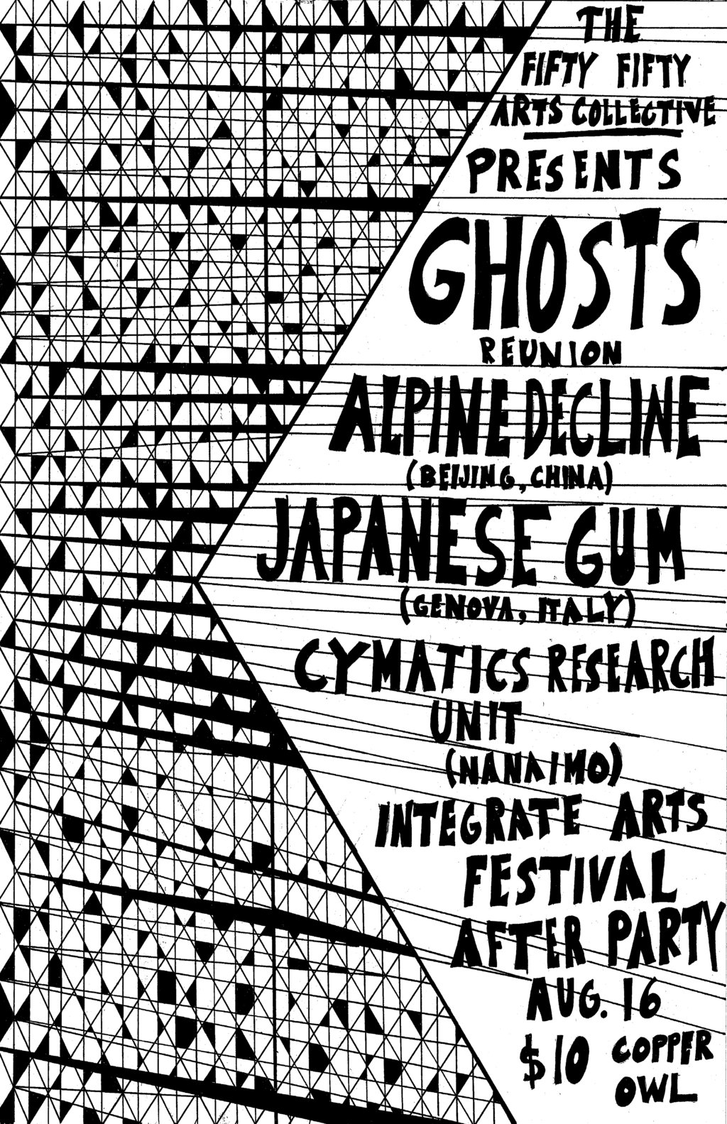 The fifty fifty arts collective is proud to carry on the tradition of hosting The Integrate Art Society (Integrate Arts Festival)'s after party. This year it's at the Copper Owl featuring 4 amazing bands.