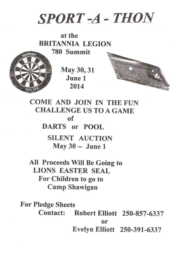 For pledge cards, contact Robert Elliott at 250-857-6337 or Evelyn Elliott at 250-391-6337