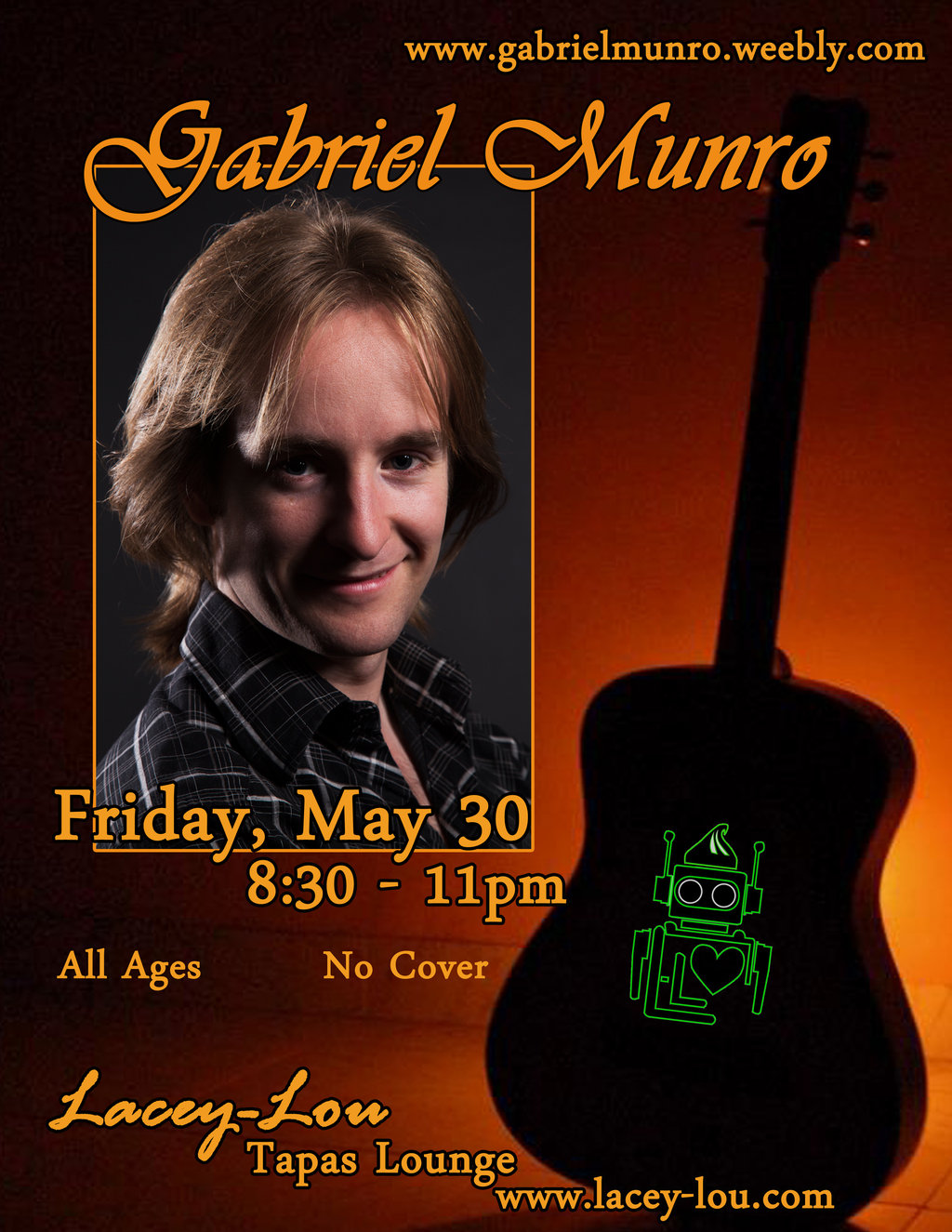 Gabriel Munro has played dozens of shows in cafes, pubs, restaurants, art galleries, and radio stations across Canada, gaining praise from musicians and music lovers alike. He's been compared to Paul Simon, Ian Curtis, jazz and celtic bands, and other completely contradictory artists.
