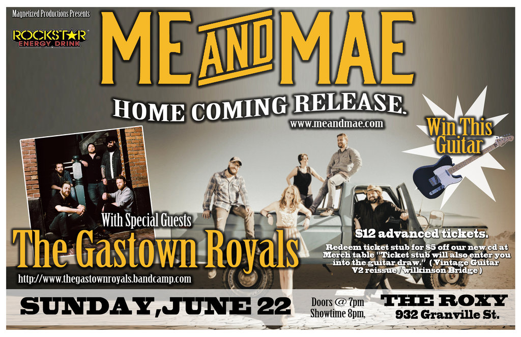 Me and Mae with Special Guest The Gastown Royals, Sunday, June 22nd @ The Roxy, 932 Granville Street, Vancouver, BC. Doors @ 7pm.