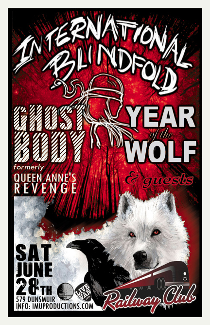 . Saturday, June 28th IMU presents INTERNATIONAL BLINDFOLD, GHOST BODY (formerly QUEEN ANNE'S REVENGE), YEAR OF THE WOLF & guests @ The Railway Club, 579 Dunsmuir . Show 10pm / $10 cover