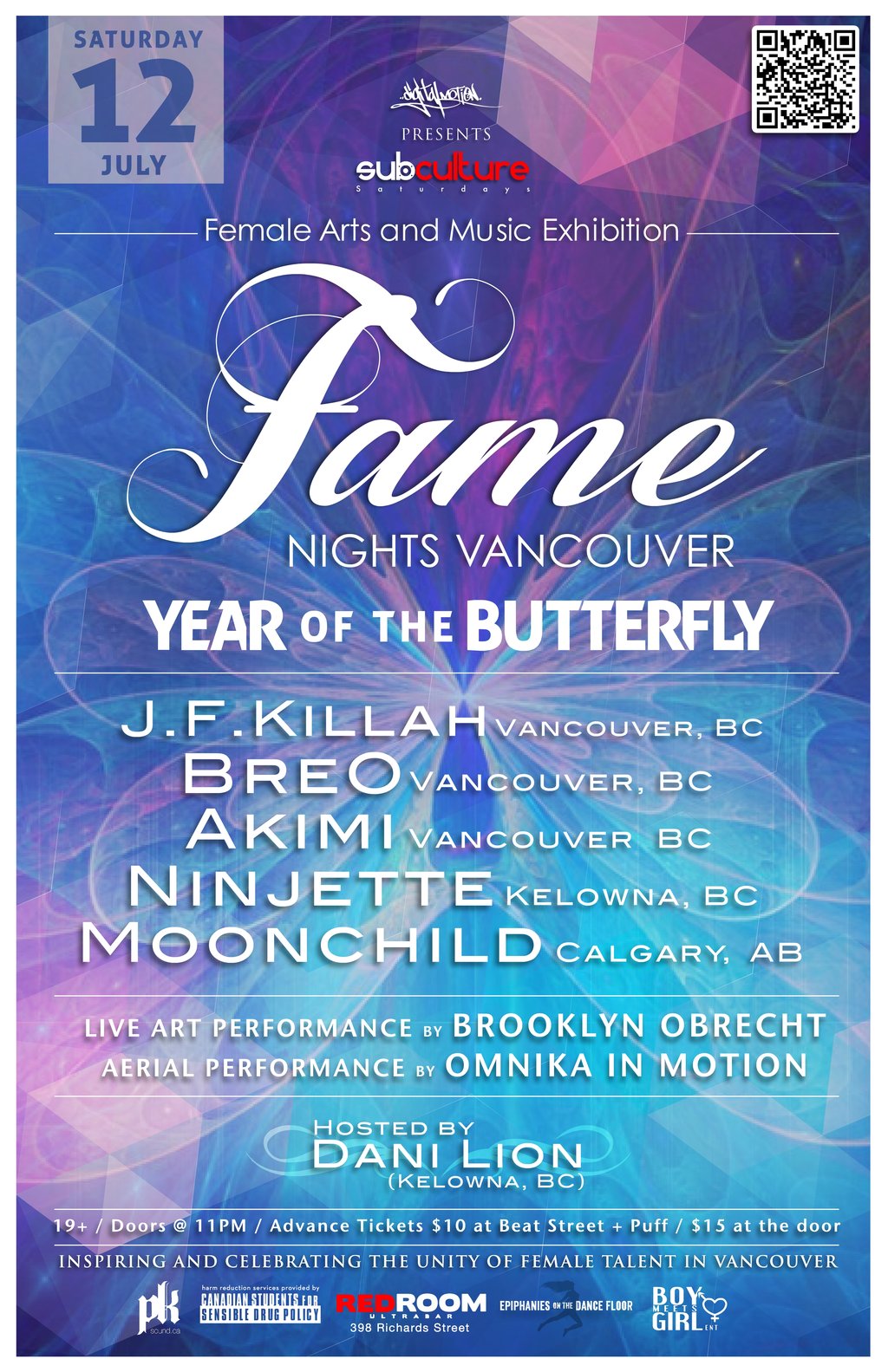 SUBculture Feat FAME Nights Vancouver (Female Arts and Music Exhibition) w/ Special Guests: J.F JILLAH, breO, AKIMI, Ninjette, MOODCHILD  @ The Red Room Jul 12 2014 - Jan 8th @ The Red Room
