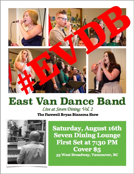 The Farewell Bryan Binnema Show: East Van Dance Band @ Seven Dining Lounge Aug 16 2014 - Jan 7th @ Seven Dining Lounge