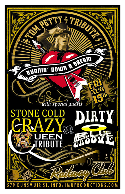 . Friday, August 15th IMU presents RUNNIN' DOWN A DREAM Tom Petty Tribute, STONE COLD CRAZY Queen Tribute & DIRTY BLUE GROOVE @ The Railway Club, 579 Dunsmuir . Show 10pm / $10 cover