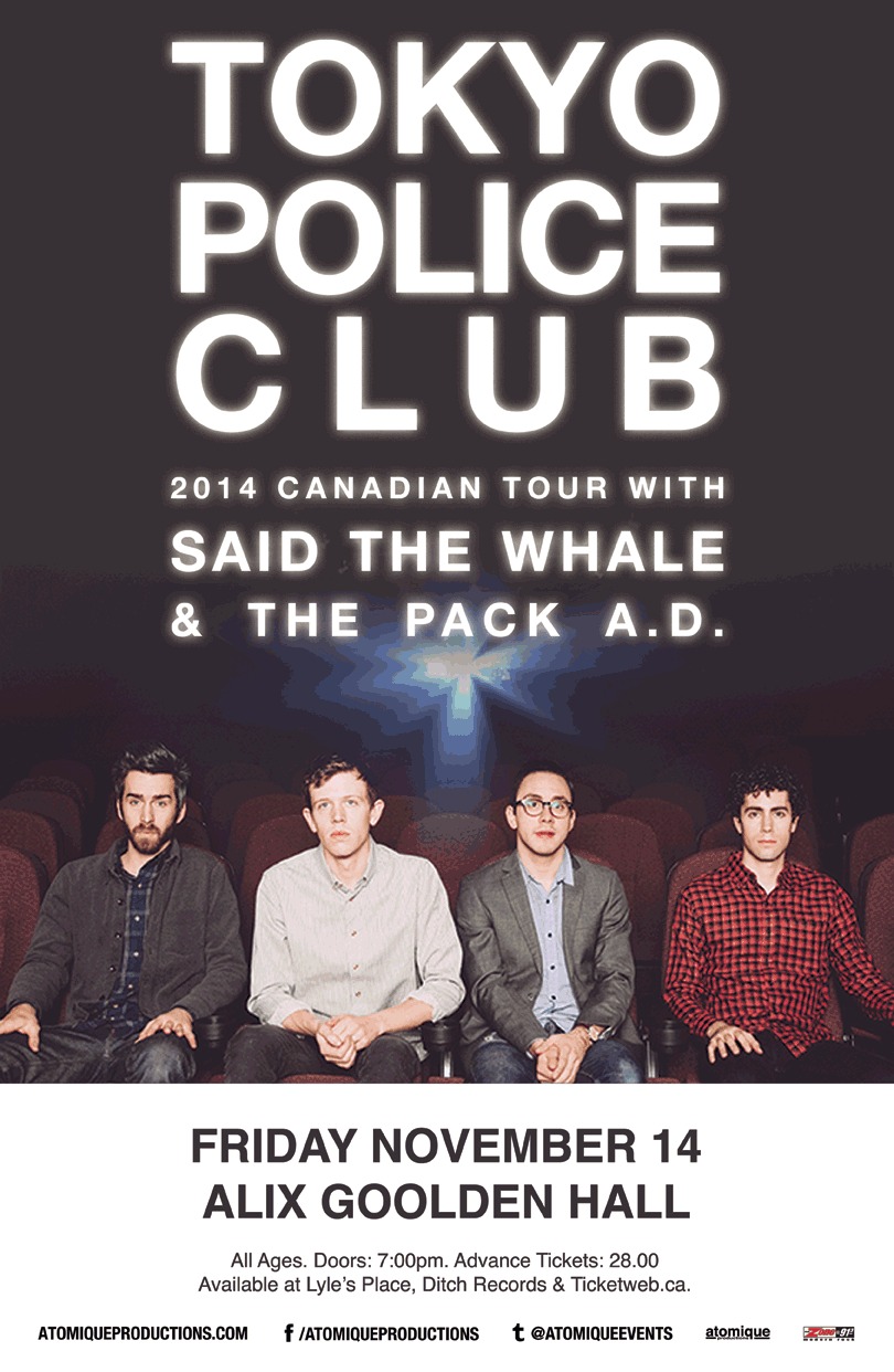 Tokyo Police Club, Said the Whale, The Pack A.D. @ Alix Goolden Performance Hall Nov 14 2014 - Feb 10th @ Alix Goolden Performance Hall