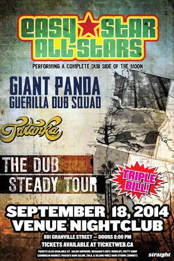 Melo Productions is pleased to welcome the Easy Star All-Stars, Giant Panda Guerilla Dub Squad and Tatanka to the Venue Nightclub on September 18th.