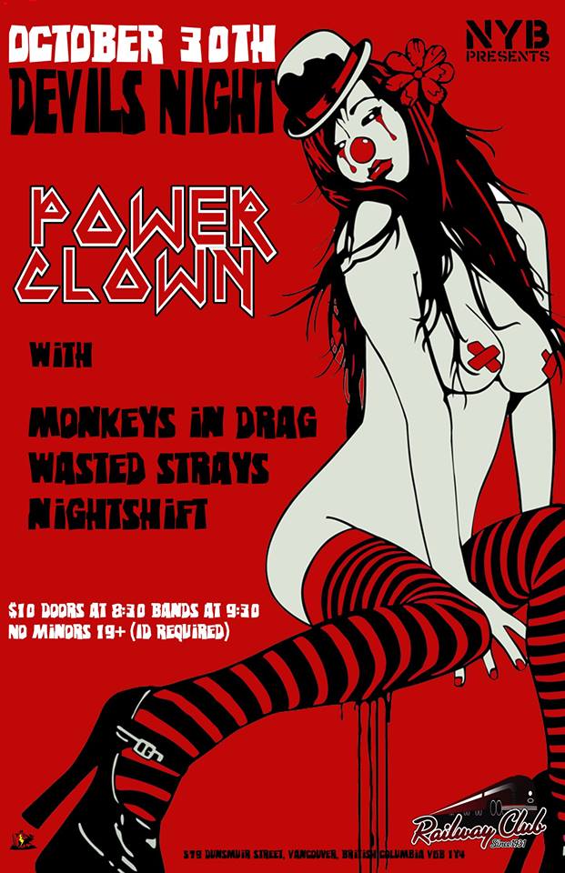 Devil's Eve Down n Dirty w/: Power Clown, Monkeys in Drag, Wasted Strays @ Railway Club Oct 30 2014 - Jan 10th @ Railway Club