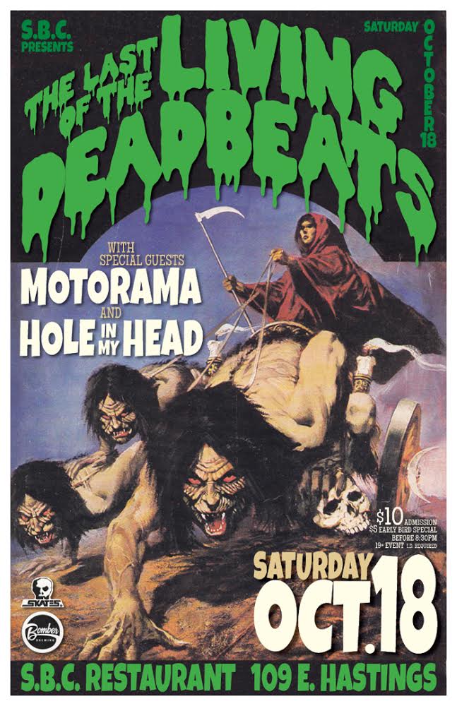 THE LAST OF THE LIVING DEAD BEATS: The Living Deadbeats (LAST SHOW), Motorama, Hole In my Head @ SBC Restaurant Oct 18 2014 - Feb 10th @ SBC Restaurant