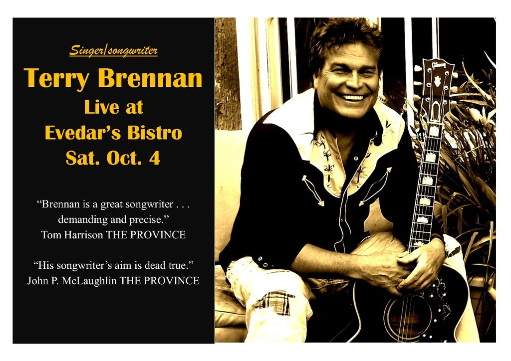 Award Winning Rhythm & Roots Singer/Songwriter: Terry Brennan @ Evedar's Bistro Oct 4 2014 - Feb 19th @ Evedar's Bistro