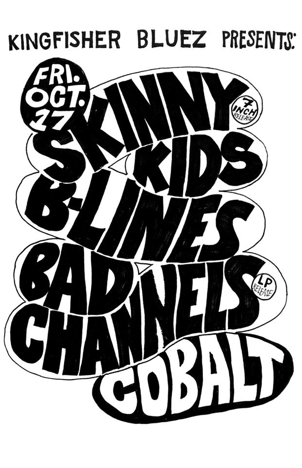 It's the Skinny Kids 7" release, the Bad Channels LP release, and hey, the B-Lines!!!! Two new records on Kingfisher Bluez so it's a double release party!!!