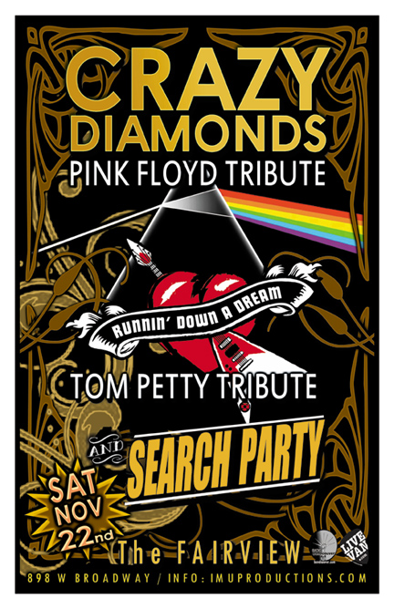 . Saturday, November 22nd IMU presents CRAZY DIAMONDS Pink Floyd Tribute, RUNNIN' DOWN A DREAM Tom Petty Tribute & SEARCH PARTY @ The Fairview, 898 West Broadway . 9pm / $10 cover