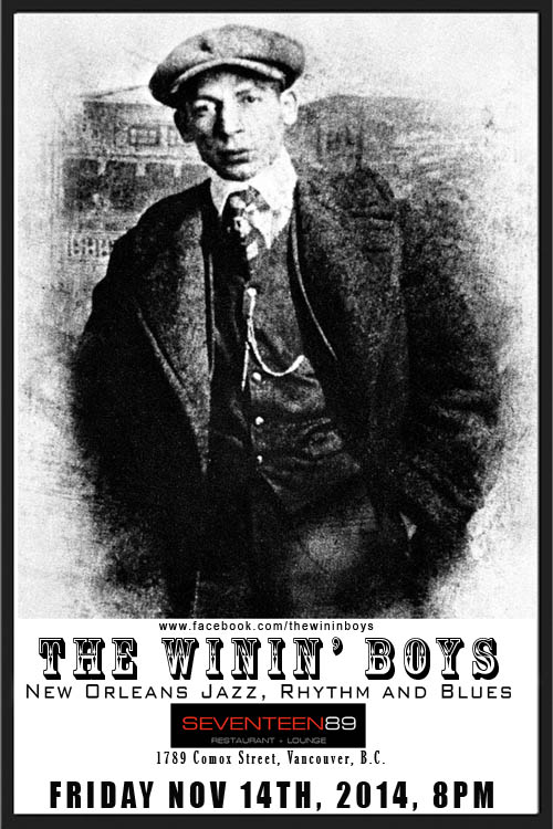 The Winin' Boys will be appearing at Seventeen89 - 1789 Comox Street (In The West End) on Friday Night, November 14. The Winin' Boys including Bruce Gerrish-vocals and guitar, Dave Quinn- clarinet/sax & Sam Shoichet on upright bass and Lorne Etkin on drums. We are looking forward to bringing you our New Orleans circadian rhythms!