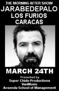 Jarabedepalo started back in 1996 and quickly became one of the biggest bands in Spain and Latin America playing in almost every country of the continent. After a trip to Cuba, Catalan born Pau Dones got the inspiration to write the song La Flaca which was a worldwide success; after that, tours, awards and albums started happening. They have been nominated several times for the Latin Grammys, almost every time they release an album, the latest SOMOS was nominated for Album of the Year, Best Pop Rock album, and best song for SOMOS. Jarabedepalo has that Mediterranean sound of Barcelona's bands that mix Latin with gypsy rhythms, a perfect combination for a party. But Jarabedepalo has an edge, their songs are bohemian with a positive message. A star not only in his native Spain, but in Italy and most of Europe Pau Dones has collaborated with Luciano Pavarotti, Alanis Morrisette, Celia Cruz and even wrote songs for Ricky Martin. In 2014 they toured the East coast of the USA, México, Chile, Argentina,