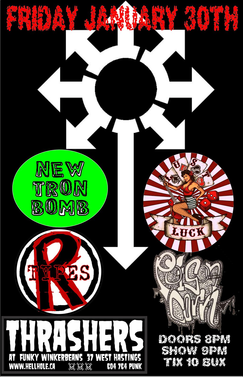 New Tron Bomb, Lust 4 Luck, The R Types   , Poison Corn @ Funky Winker Beans Jan 30 2015 - Feb 10th @ Funky Winker Beans