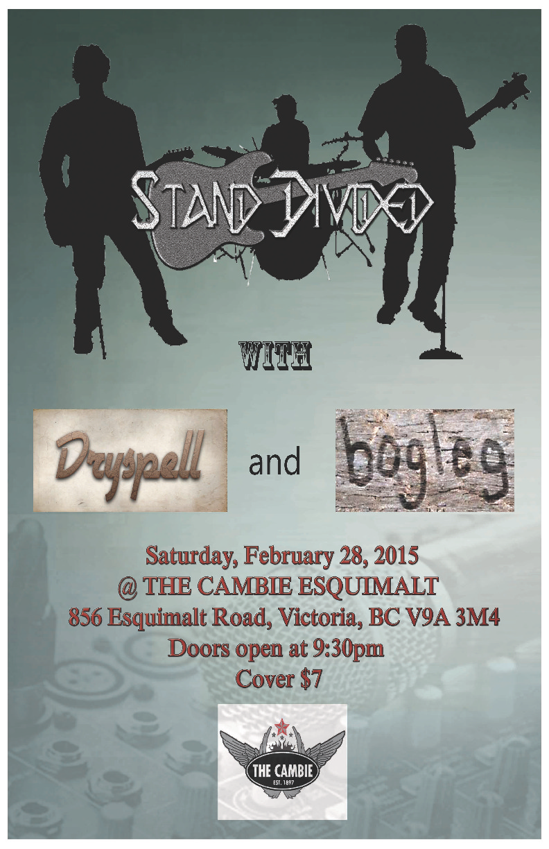 Stand Divided, Dryspell, bogleg @ The Cambie at the  Esquimalt Inn Feb 28 2015 - Feb 18th @ The Cambie at the  Esquimalt Inn