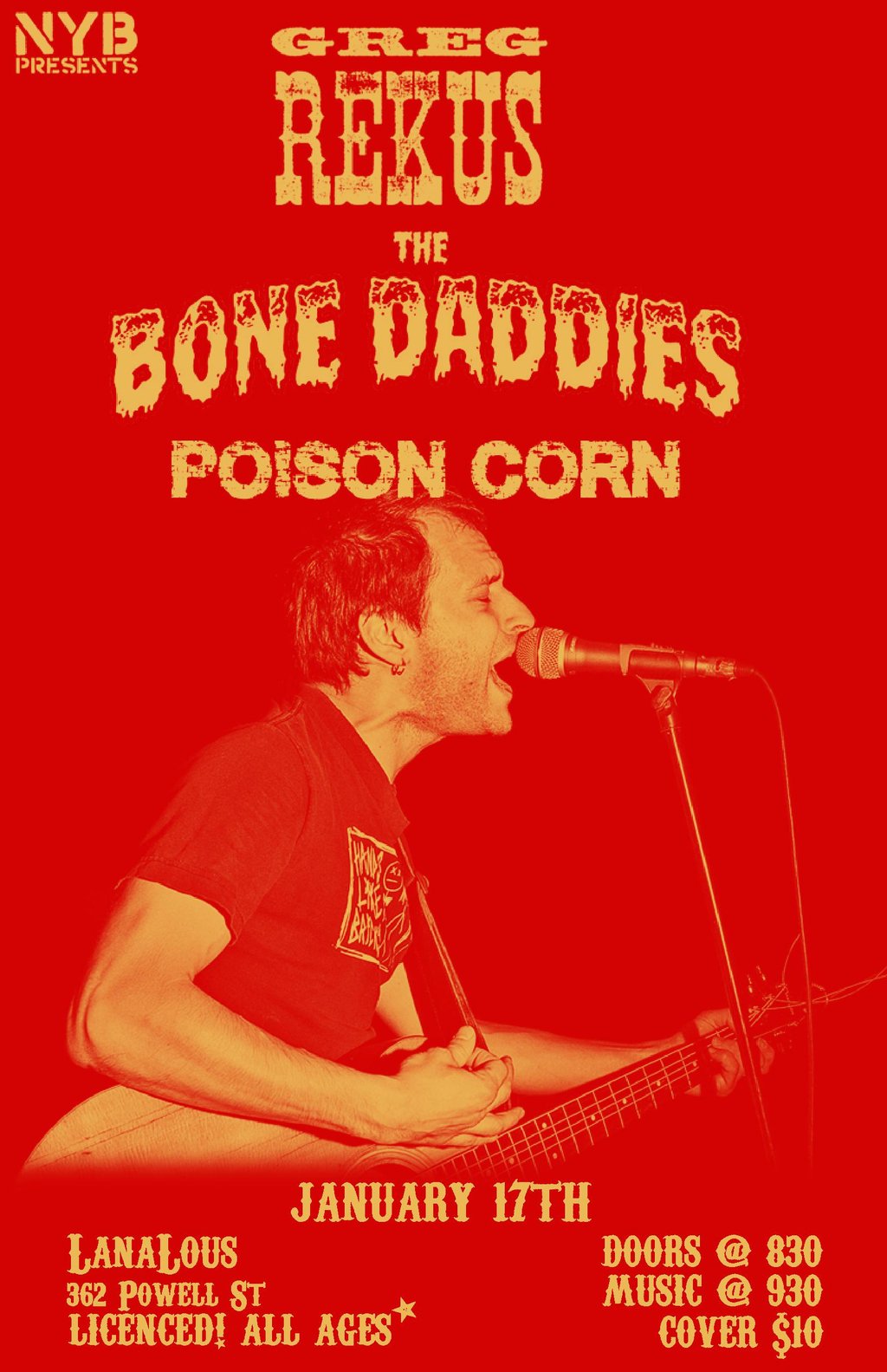 featuring the good time kings Bone Daddies back in action after a brief hiatus and from the valley, Poison Corn supporting their latest album.