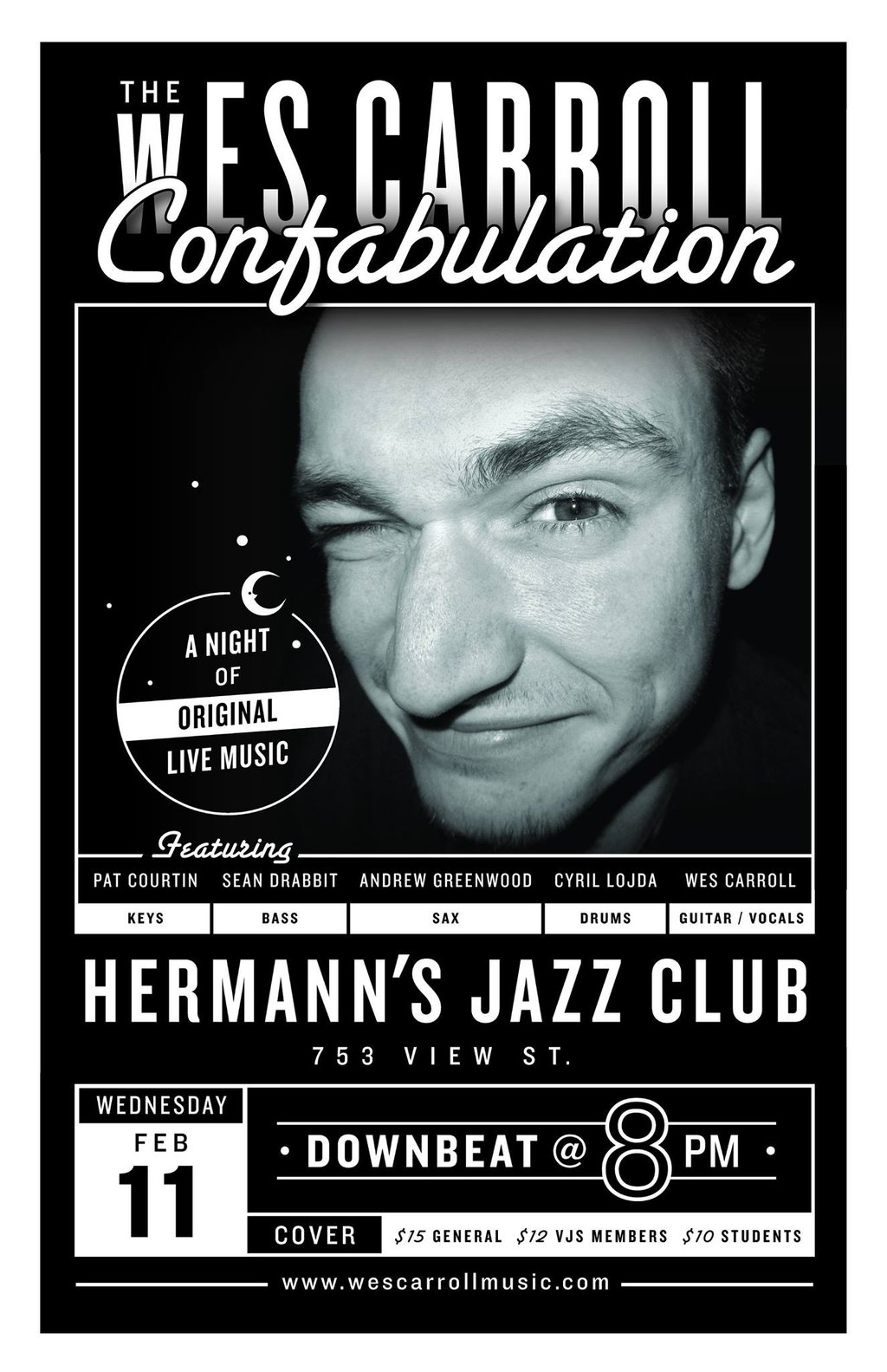 Composer, arranger, guitarist and vocalist, Wes Carroll is dedicated to reaching audiences with his original creations. His writing strives to surprise and intrigue through swings of volume, groove and emotion. In the summer of 2013, Wes contributed his musicianship and five originals to the record “Off Pulse Quartet, Live in Holland”. The album was recorded at the end of the quartet's two month stay in the Netherlands and was released the following summer. The Wes Carroll Confabulation walks the tight-rope, balancing detailed arrangements with the power of spontaneity. They perform predominantly original music, stretching out into a world of hip-hop rhythms and modern harmony while not losing their firm footing in post-bop, classic jazz and the blues.