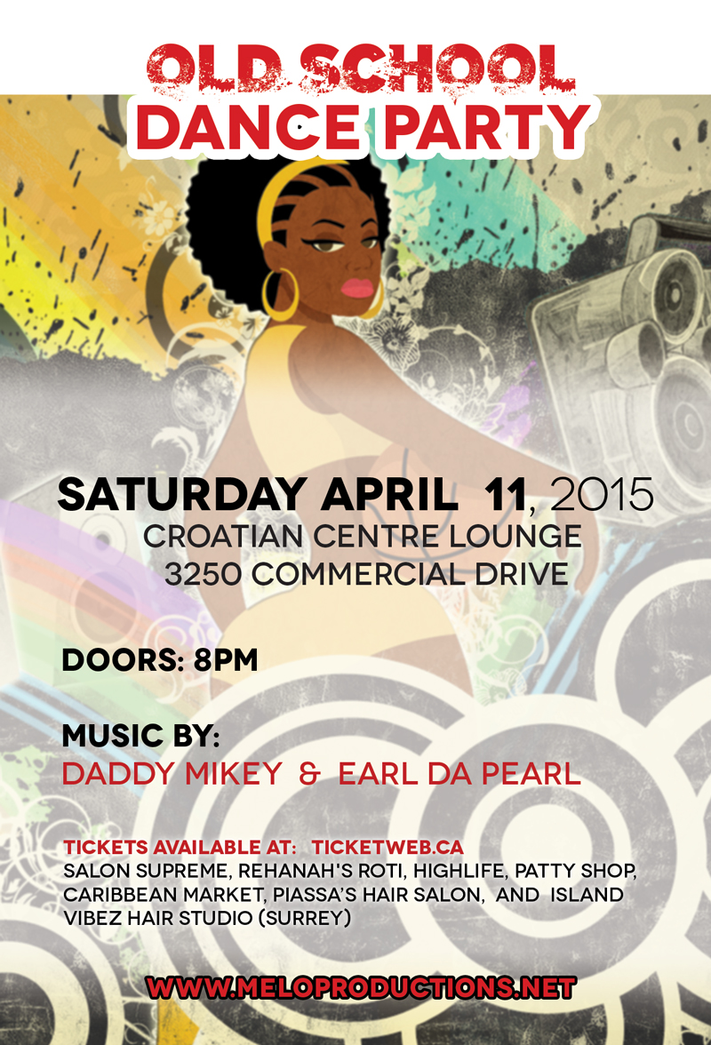 Yes, you Old School Heads out there. . . Dust off those platform shoes and dress up in your finest Old School Threads! You'll love the trip down memory lane plus you’ll be hooked on every song. Come get on the Soul Train and enjoy your favorite Old School vibes; Bob Marley and the Wailers, The Mighty Sparrow, Earth, Wind and Fire, Michael Jackson, Marvin Gaye and Donna Summer, just to name a few. . . at Melo Productions Old School Dance Party!; featuring DJ’s: Daddy Mikey and Earl da Pearl!