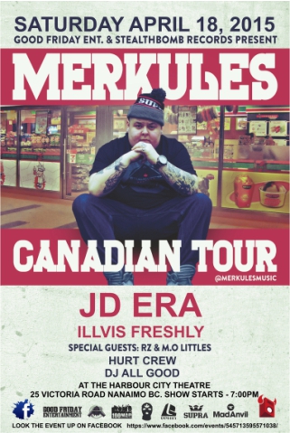 Merkules: MERKULES, JD ERA, RZ, M.O. littles, Illvis Freshly, Hurt Crew, DJ All Good @ The Harbour City Theatre Apr 18 2015 - Feb 12th @ The Harbour City Theatre