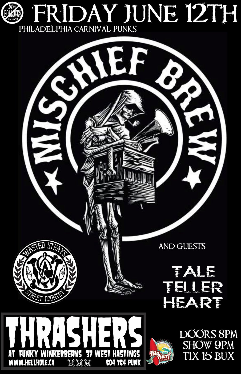 Mischief Brew, Wasted Strays, Tale Teller Heart @ Funky Winker Beans Jun 12 2015 - Feb 26th @ Funky Winker Beans