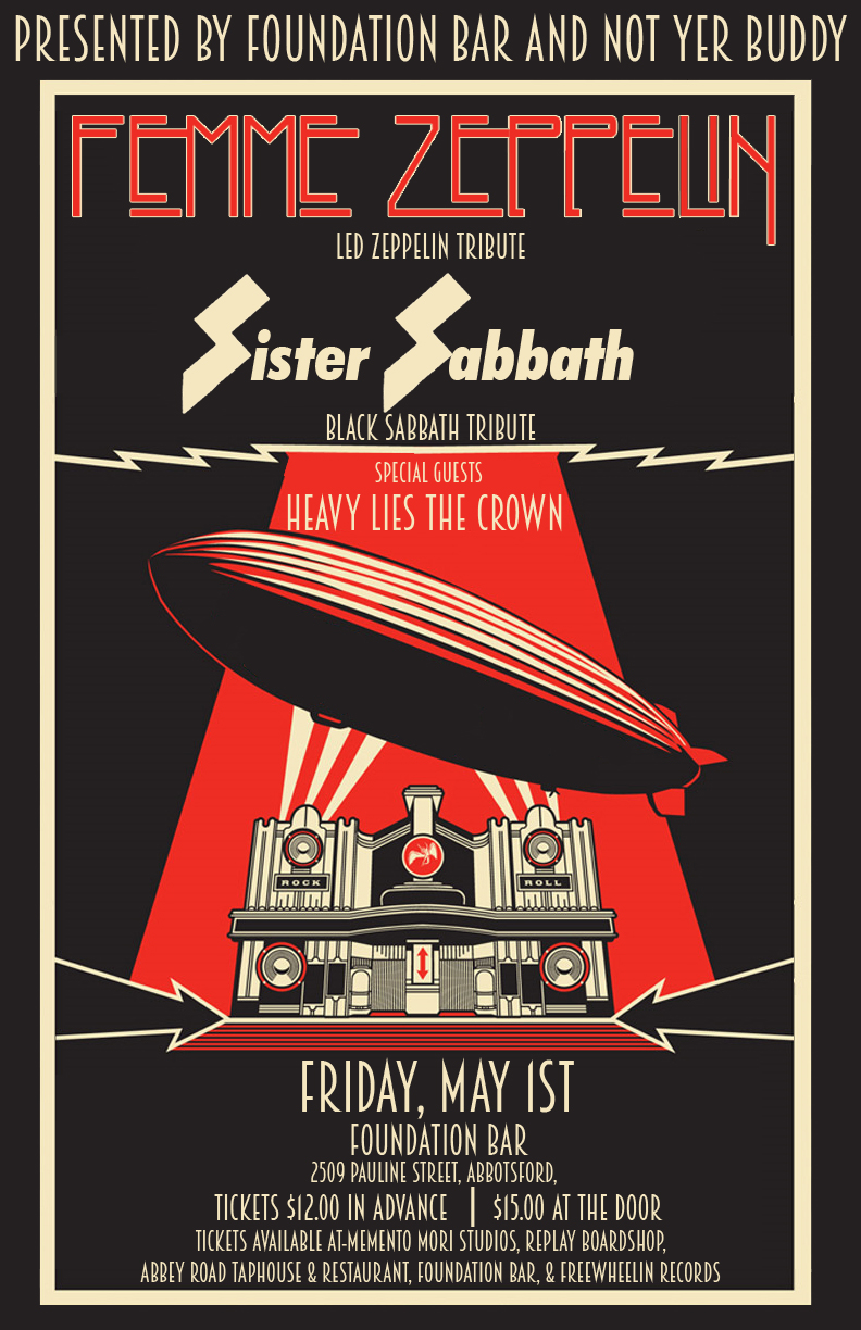 Friday May 1st at Foundation Bar we welcome Femme Zeppelin and Sister Sabbath to Abbotsford for a fun night of RocknRoll, Sin and Shenanigans
