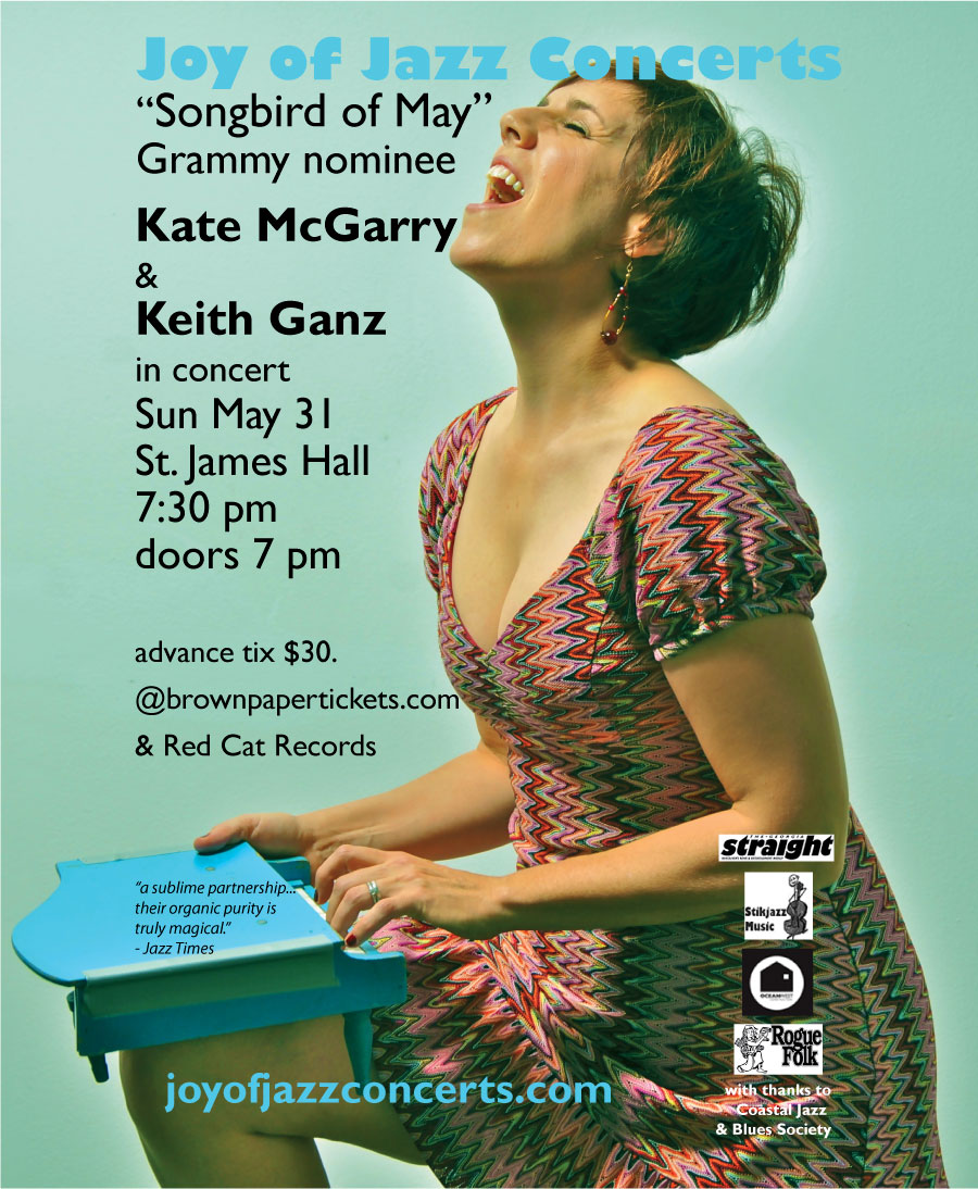 Joy Of Jazz Concerts "SONGBIRD OF MAY": Kate McGarry, Keith Ganz  @ St. James Community Hall May 31 2015 - Nov 14th @ St. James Community Hall