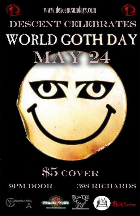 World Goth Day is a time to make the presence of the alternative Gothic culture well known throughout all of society. It all started from a UK Goth Day celebration in 2009 and has since grown into a international event with cities participating around the globe. World Goth Day is officially May 22 but Descent will be celebrating its unity with the world wide community on our usual event day, Sunday May 24. Take part in your world wide community to voice your solidarity for the dark, alternative fashion and lifestyle with this local event. Come out wearing something comfortable or your best Gothic clothes to meet your fellow creatures of the night and party hard and loud enough to wake up the city of Vancouver!