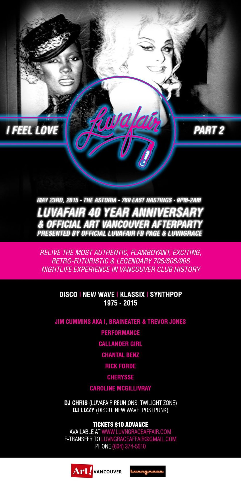 LUVAFAIR-I FEEL LOVE-: I, Braineater, Trevor Jones, Callander Girl , Chantal Benz, Cherysse, Caroline McGillivray, DJ Chris, DJ Lizzy @ The Astoria  May 23 2015 - Feb 12th @ The Astoria