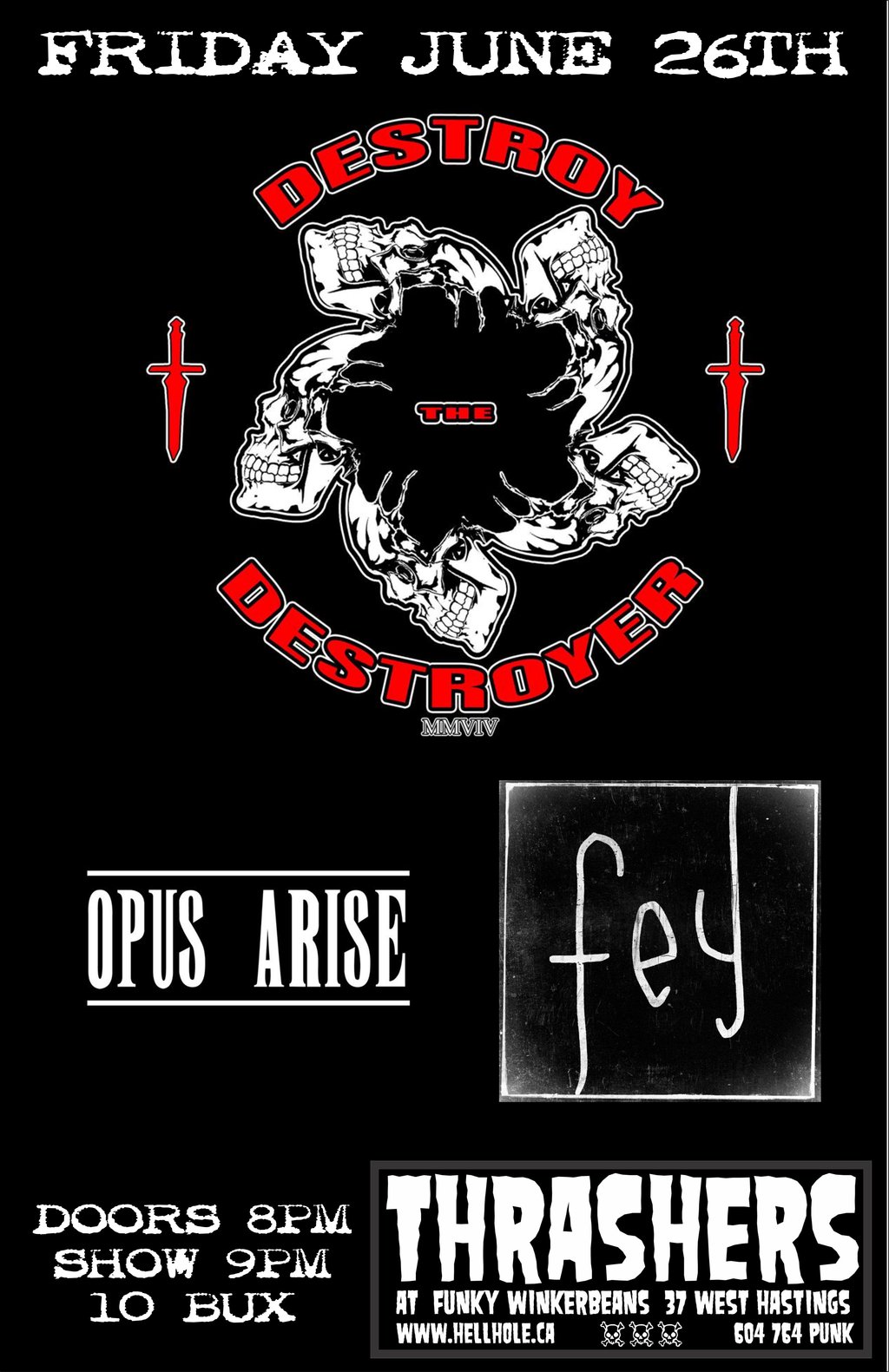 Destroy the Destroyer , Opus Arise, Fey @ Funky Winker Beans Jun 26 2015 - Feb 15th @ Funky Winker Beans