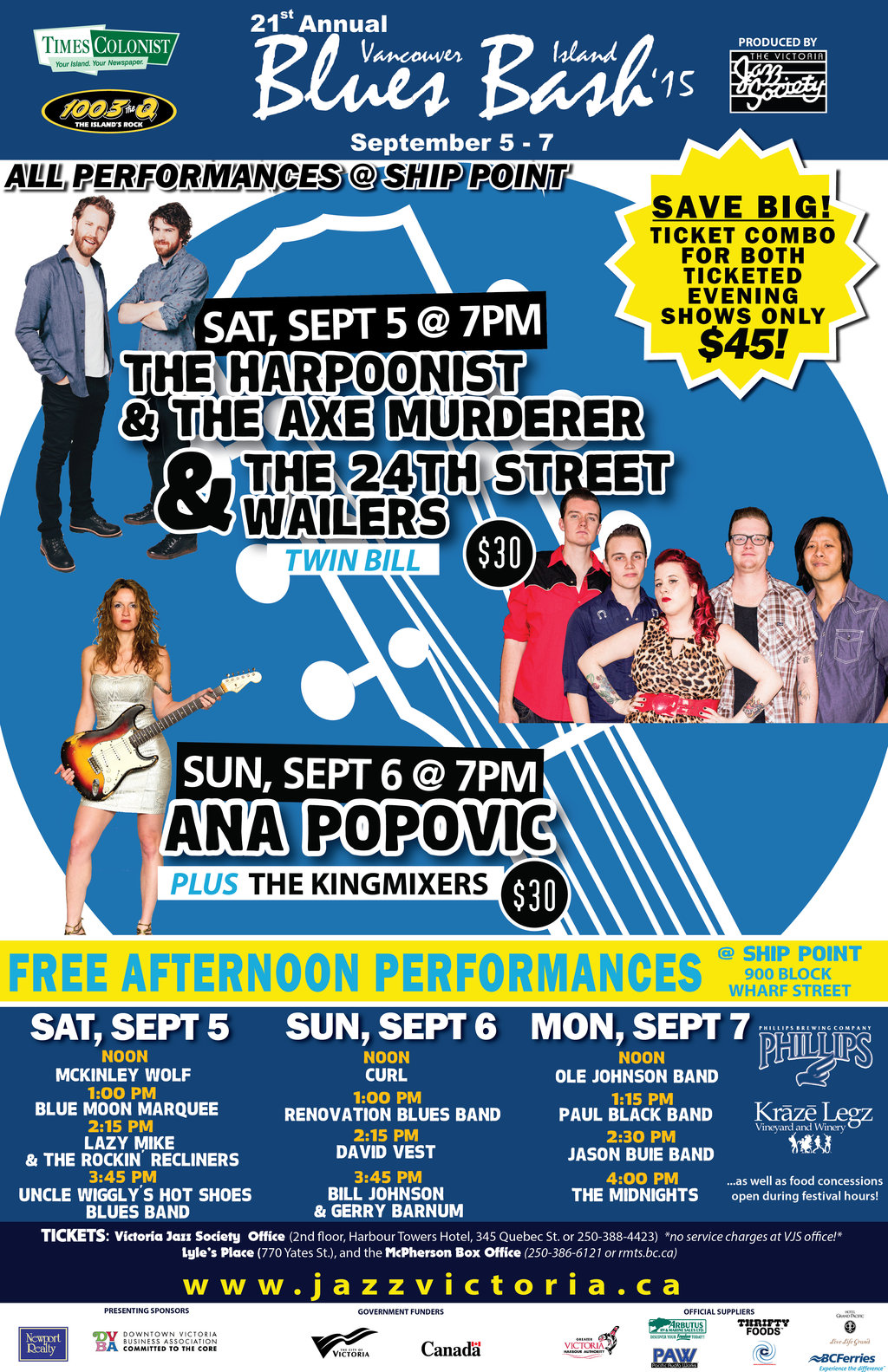 For the full schedule of the Free Afternoon Performance Series, visit: http://jazzvictoria.ca/blues-bash/page/schedule